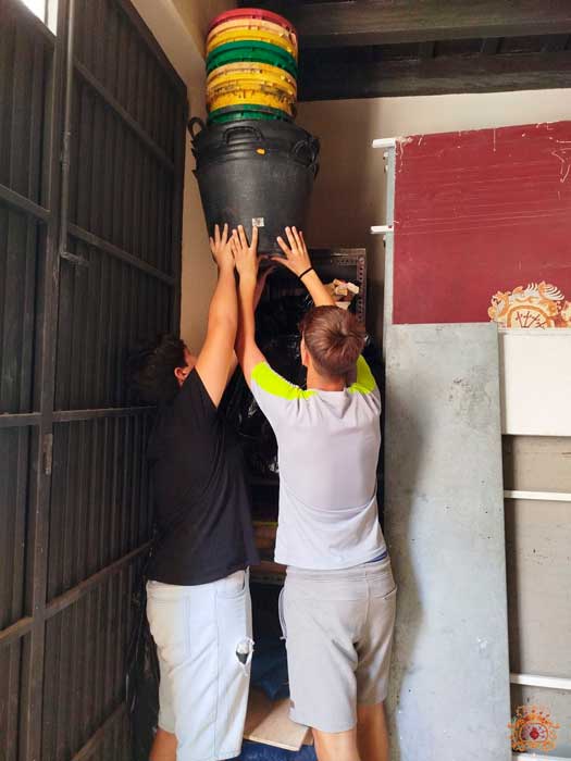 Comenzaron ante las Plantas de la Santísima Virgen de las Angustias, tras sus rezos, recogieron los utensilios usados en los montajes de alfombras realizados. Y por último disfrutaron de una convivencia en las dependencias de la Casa de Hermandad, donde se plantearon las actividades a desarrollar en los próximos meses.