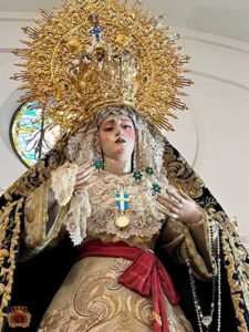 Este sábado 20 de Septiembre, nuestra Antigua y Venerable Hermandad, representada por nuestro Diputado de Relaciones Externas e Institucionales, D. Javier Mantaras Menchén, asistió en la Parroquia de San Pedro, a la Misa de Acción de Gracias e Imposición de la Medalla de Oro de la muy noble y leal ciudad de Jerez a María Santísima de la Paz en su Mayor Aflicción, titular mariana de nuestra querida Hermandad de la Coronación.
