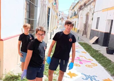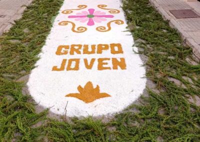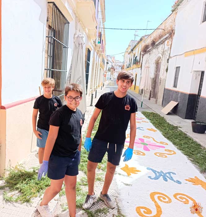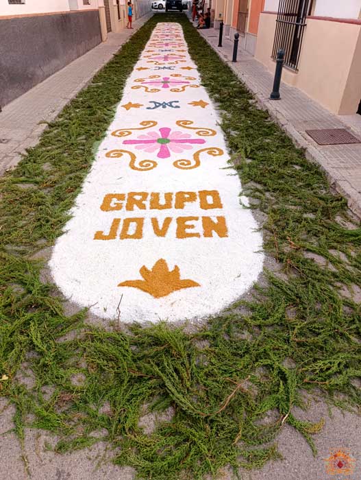 Desde estas líneas la Junta de Gobierno desea agradecer tanto a D. Gonzalo Sánchez Herrero y Dª. Ana Sánchez Herrero por la creación y diseño de las plantillas de las alfombras, como a nuestro hermano D. Ramón J. Valderas por su desinteresada ayuda para implicar a los vecinos de nuestro barrio. Y por último y no menos importante a todos los hermanos y devotos que componen el grupo Joven e Infantil de nuestra Hermandad, junto a sus padres y madres, por su participación, gran labor y esfuerzo, haciendo posible el montaje de las alfombras de sal.