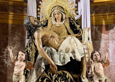 “Al sexto mes fue enviado por Dios el ángel Gabriel a una ciudad de Galilea, llamada Nazareth, a una virgen desposada con un hombre llamado José, de la casa de David; el nombre de la virgen era María. Y entrando, le dijo: «Alégrate, llena de gracia, el Señor está contigo. Bendita tu entre las mujeres»